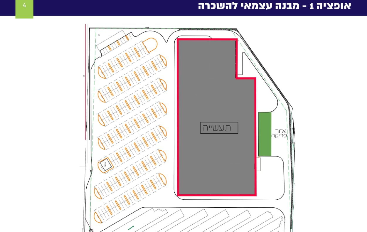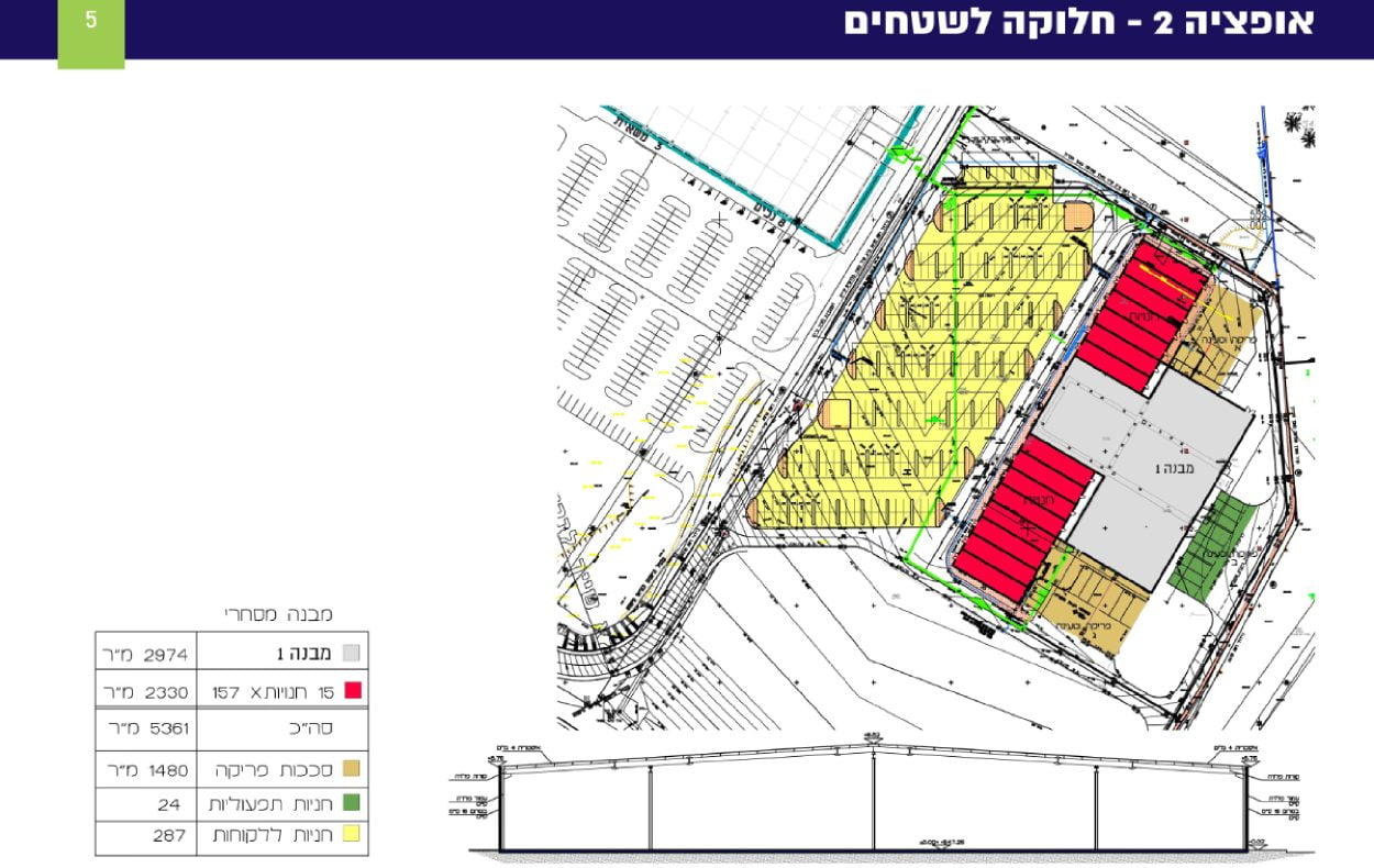 שטח הקרקע 40 דונם, גג המבנה ושלד המבנה נבנו מחדש ובמקום שטחי תפעול צמודים.